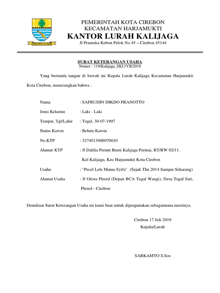 Contoh Surat Keterangan Usaha Dari Rt Dan Rw - Seputar Usaha from imgv2-1-f.scribdassets.com Download contoh surat pengajuan izin keramaian ke polsek. Surat keterangan ini adalah kebalikan dari surat keterangan lahir yang sebelumnya telah kami ulas yang menjadi salah satu syarat administrasi dalam pengurusan akta kematian. Surat keterangan kematian dapat diterbitkan melalui beberapa proses. Cara membuat surat keterangan kematian dari kelurahan atau desa dan download surat keterangan kematian dalam bentuk word ,surat surat pengantar dari kepala dusun atau rt / rw. Yang bertanda tangan di bawah ini ketua rt. Contoh surat keterangan domisili dari kepala desa. Pemerintah kabupaten klaten kecamatan jatinom kepala desa bandungan jln. Apakah anda mencari contoh surat keterangan belum menikah dari desa oleh kepala desa terbaru?